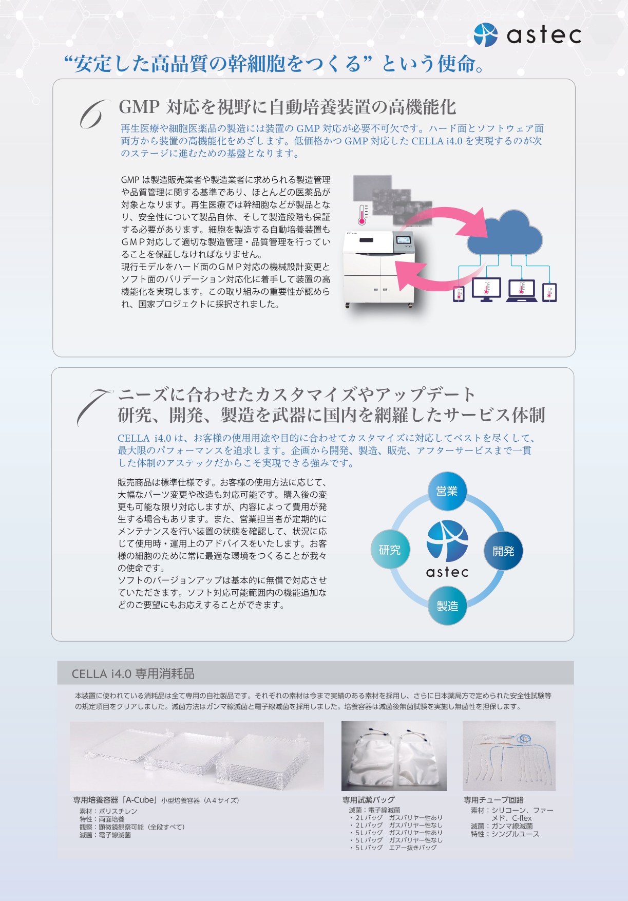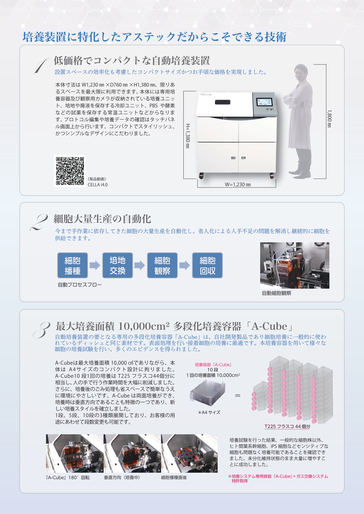 閉鎖系培養容器 A-CubeⓇを用いた自動化培養ソリューション。